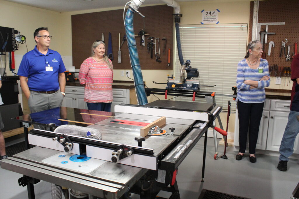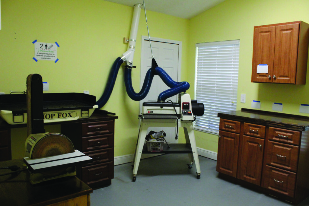 Many John Knox residents are former and current woodworkers, and some of them have created shops in the garages at their residences. Now all residents will have the opportunity to work in a fully air-conditioned shop.